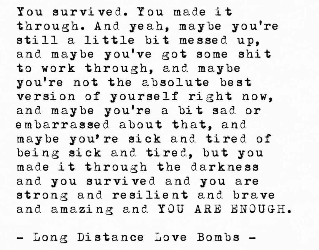 The next morning I woke up in a very dark place though. Sometime in the night my brain remembered images of feeling loved, and realizing it wasn’t love.
